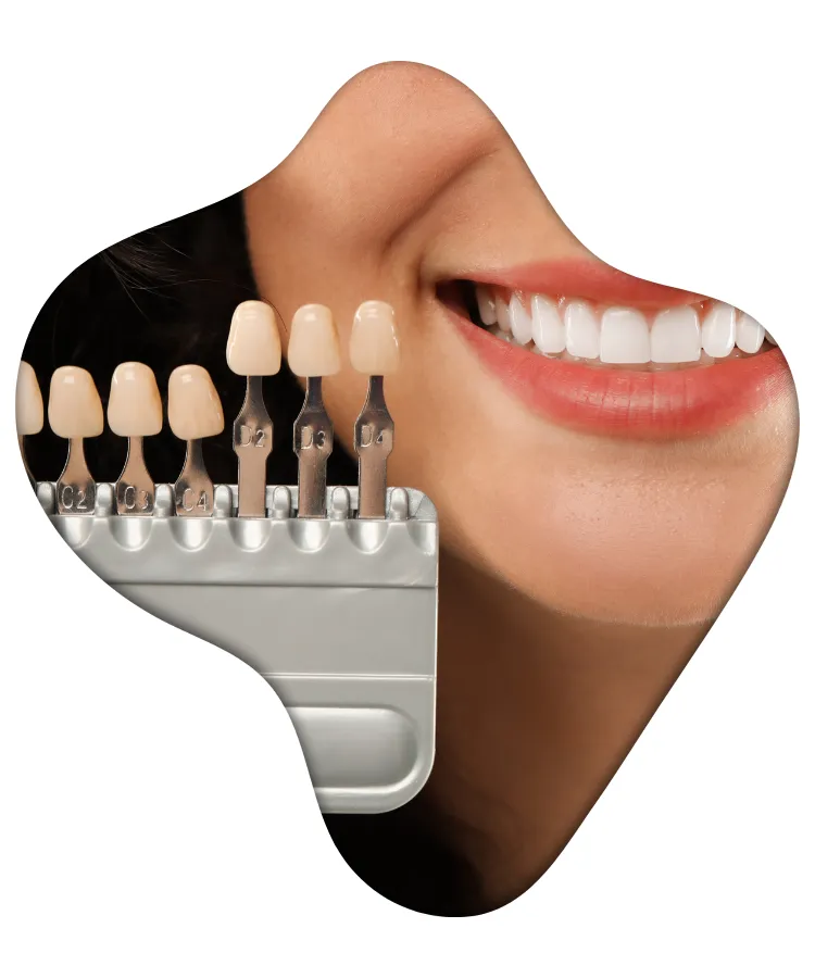 Crowns, veneers, and fillings do not whiten and may appear darker relative to natural teeth